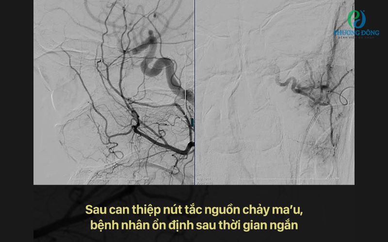 Chỉ sau thời gian ngắn thực hiện, tình trạng chảy máu được kiểm soát hoàn toàn. Bệnh nhân nhanh chóng ổn định, phục hồi tốt và có thể sinh hoạt bình thường mà không cần trải qua thêm cuộc phẫu thuật nào.