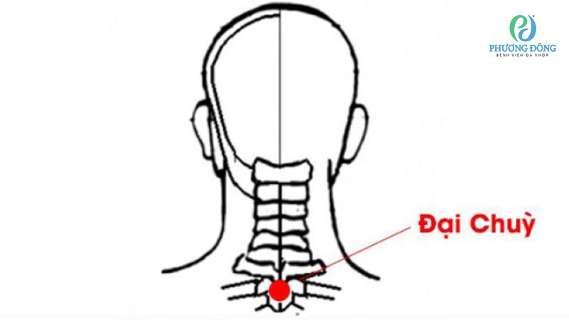 Huyệt đại chùy nằm ở vùng lõm gần dưới đầu mỏm gai đốt sống cổ C7, hoặc xác định bằng phần xương to nổi rõ phía sau cổ. Không chỉ có tác dụng giảm đau, giải tỏa căng cứng, huyệt này còn hỗ trợ điều trị tình trạng đau tức vùng ngực sườn, ho và cảm cúm.