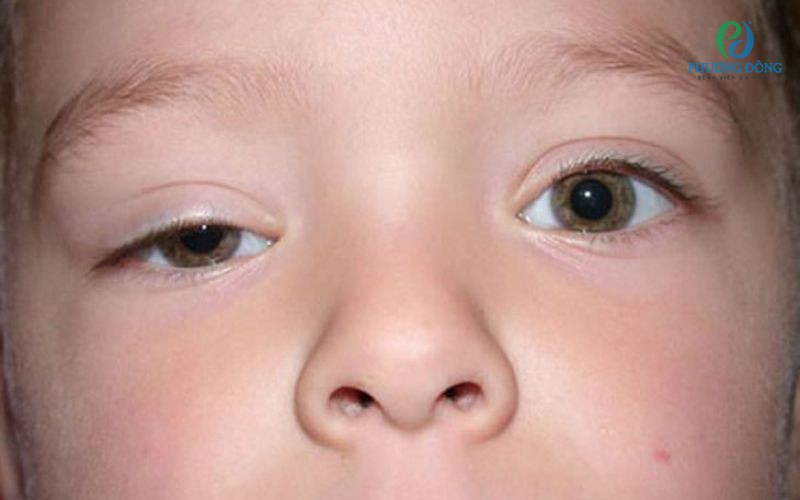 - Sụp mí mắt là biểu hiện điển hình và dễ nhận biết nhất. Mí mắt có thể sụp nhẹ hoặc sụp hoàn toàn, che khuất một phần hoặc toàn bộ nhãn cầu. Tình trạng này không gây mù nhưng làm suy giảm thị lực và ảnh hưởng nghiêm trọng đến sự phát triển thị giác ở trẻ nhỏ, đồng thời gây mất thẩm mỹ