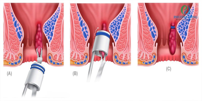 - Thắt vòng cao su: Sử dụng vòng cao su thắt búi trĩ, ngăn máu lưu thông, khiến búi trĩ tự teo và rụng. Thường áp dụng cho búi trĩ nhỏ.