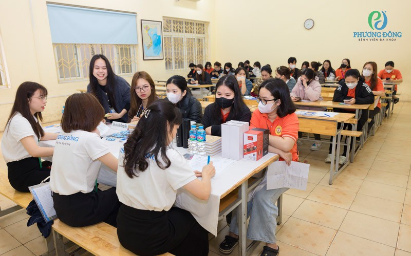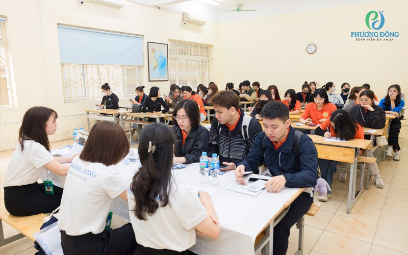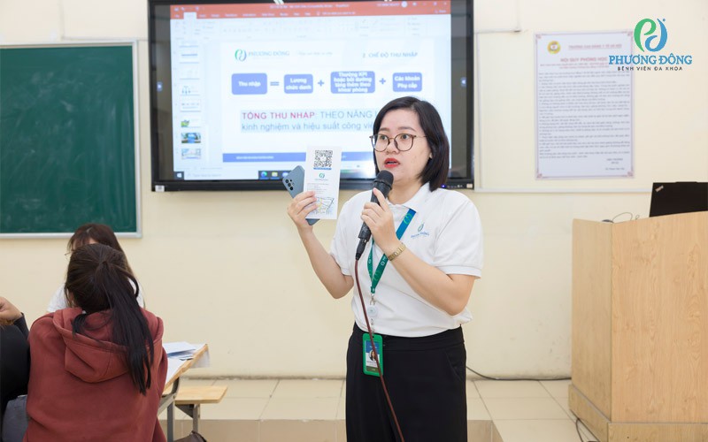 Thông qua những trao đổi trực tiếp với nhà tuyển dụng, nhiều sinh viên đã có dịp lắng nghe những chia sẻ thực tế về hành trình phát triển nghề nghiệp trong lĩnh vực y tế. Đây cũng là cơ hội để các bạn trẻ hiểu rõ hơn về yêu cầu chuyên môn, tác phong nghề nghiệp và những kỹ năng cần thiết khi làm việc trong môi trường bệnh viện.