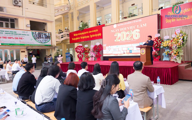Ngày 14/3/2026 vừa qua, Ngày hội việc làm 2026 do Trường Cao đẳng Y tế Hà Nội tổ chức đã diễn ra sôi nổi với sự tham gia của nhiều cơ sở y tế và đơn vị tuyển dụng trong lĩnh vực chăm sóc sức khỏe. Với vai trò khách mời và nhà tuyển dụng, Bệnh viện Đa khoa Phương Đông đã có mặt tại sự kiện để trực tiếp gặp gỡ, chia sẻ và kết nối cơ hội nghề nghiệp với đông đảo sinh viên khối ngành y.