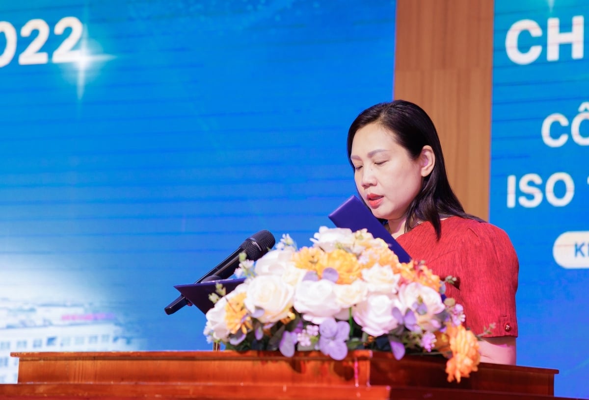 Bà Nguyễn Hồng Nhung, Phó trưởng phòng phụ trách phòng công nhận 2 - Văn phòng công nhận chất lượng quốc gia công bố quyết định. Ảnh: Thanh Hùng.