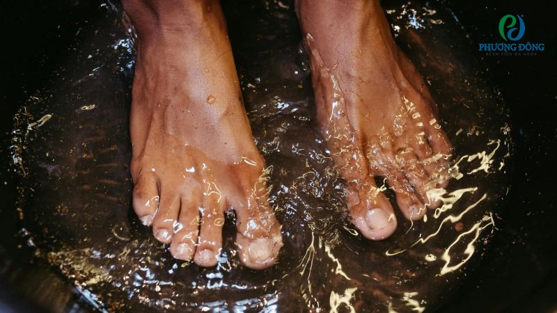 Ngâm chân bằng nước ấm từ lâu đã nổi tiếng với khả năng lưu thông khí huyết, hỗ trợ hòa tan đào thải axit uric khỏi cơ thể. Trước khi đi ngủ mỗi tối, người bệnh nên ngâm chân bằng nước ấm hoặc với thảo dược trong 20 phút, tăng hiệu quả giảm triệu chứng đau nhức.