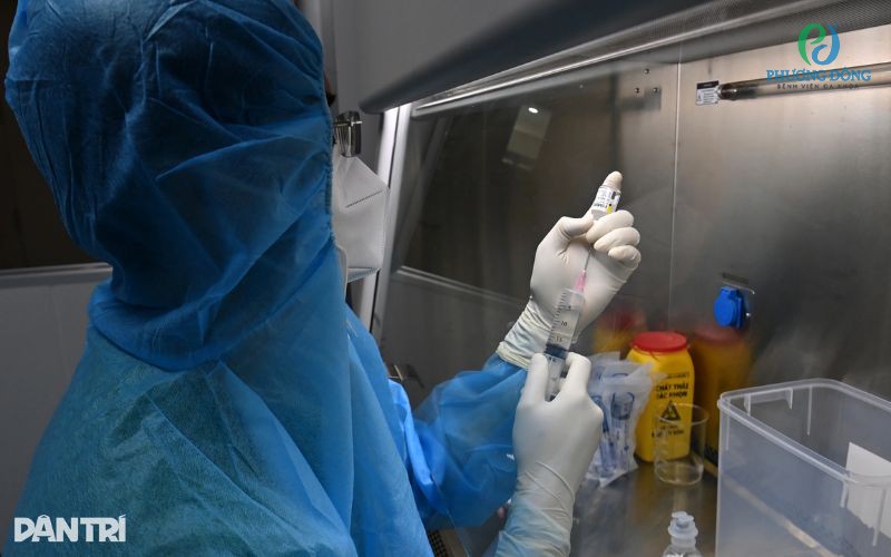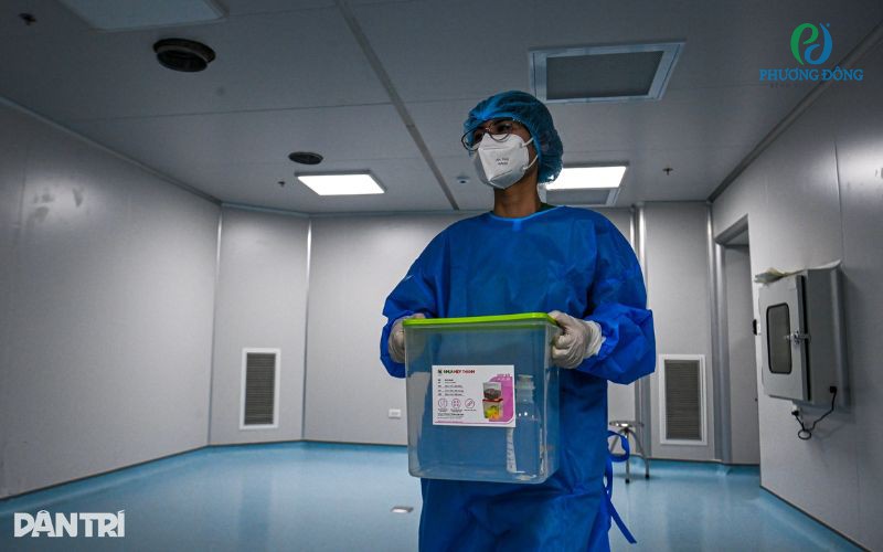 Quá trình pha chế được thực hiện trong tủ hút vô khuẩn, nơi được xem là “lớp bảo vệ” quan trọng nhất để kiểm soát nhiễm khuẩn. Hệ thống này tạo ra luồng khí một chiều, liên tục lọc sạch vi sinh vật và bụi mịn, đồng thời ngăn không cho tác nhân từ môi trường bên ngoài xâm nhập vào dung dịch thuốc.