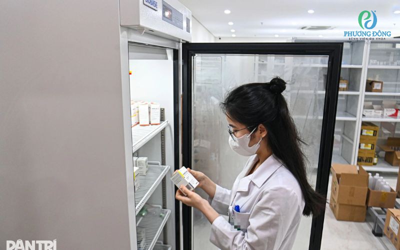 Tại kho thuốc, Pembroria được bảo quản trong tủ lạnh chuyên dụng ở 5,3 độ C, mức nằm trong ngưỡng bảo quản yêu cầu (2-8 độ C).