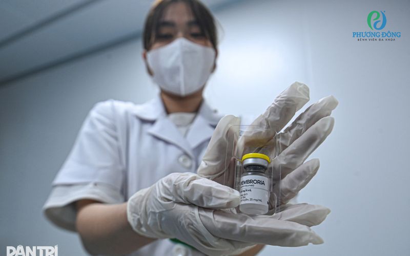 Với đợt điều trị này, bệnh nhân sẽ sử dụng 2 lọ Pembroria pha với 250ml dịch truyền để có thành phẩm cuối cùng.