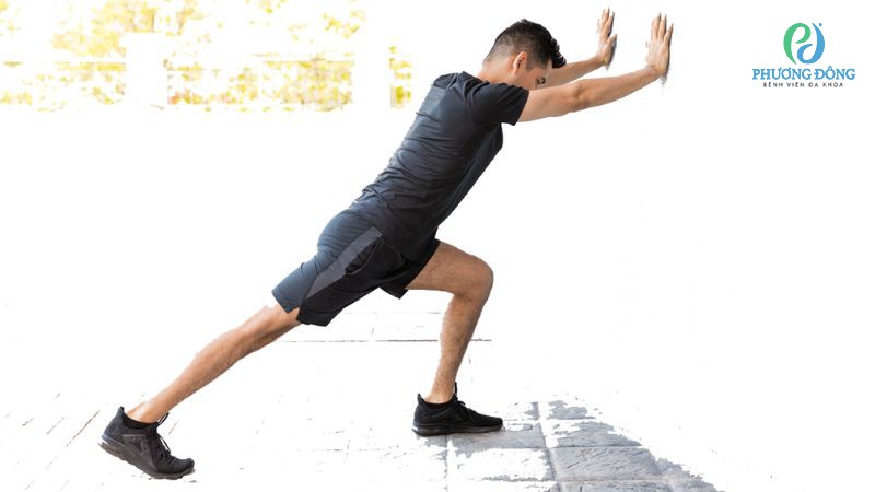 - Bước 5: Gập nhẹ gối chân trước đến khi cảm nhận được cơn căng nhẹ mặt chân sau.