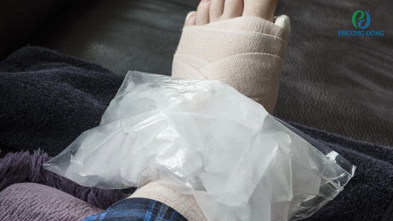 - Chườm lạnh (I): Dùng túi đựng đá hoặc khăn lạnh để chườm lên vùng tổn thương để giảm sưng nề, đau nhức. Một ngày nên áp dụng chườm 3 - 4 lần, mỗi lần dao động 15 - 20 phút.