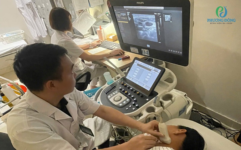 Bác sĩ sử dụng siêu âm để xác định chính xác vị trí và kích thước của nhân tuyến giáp.