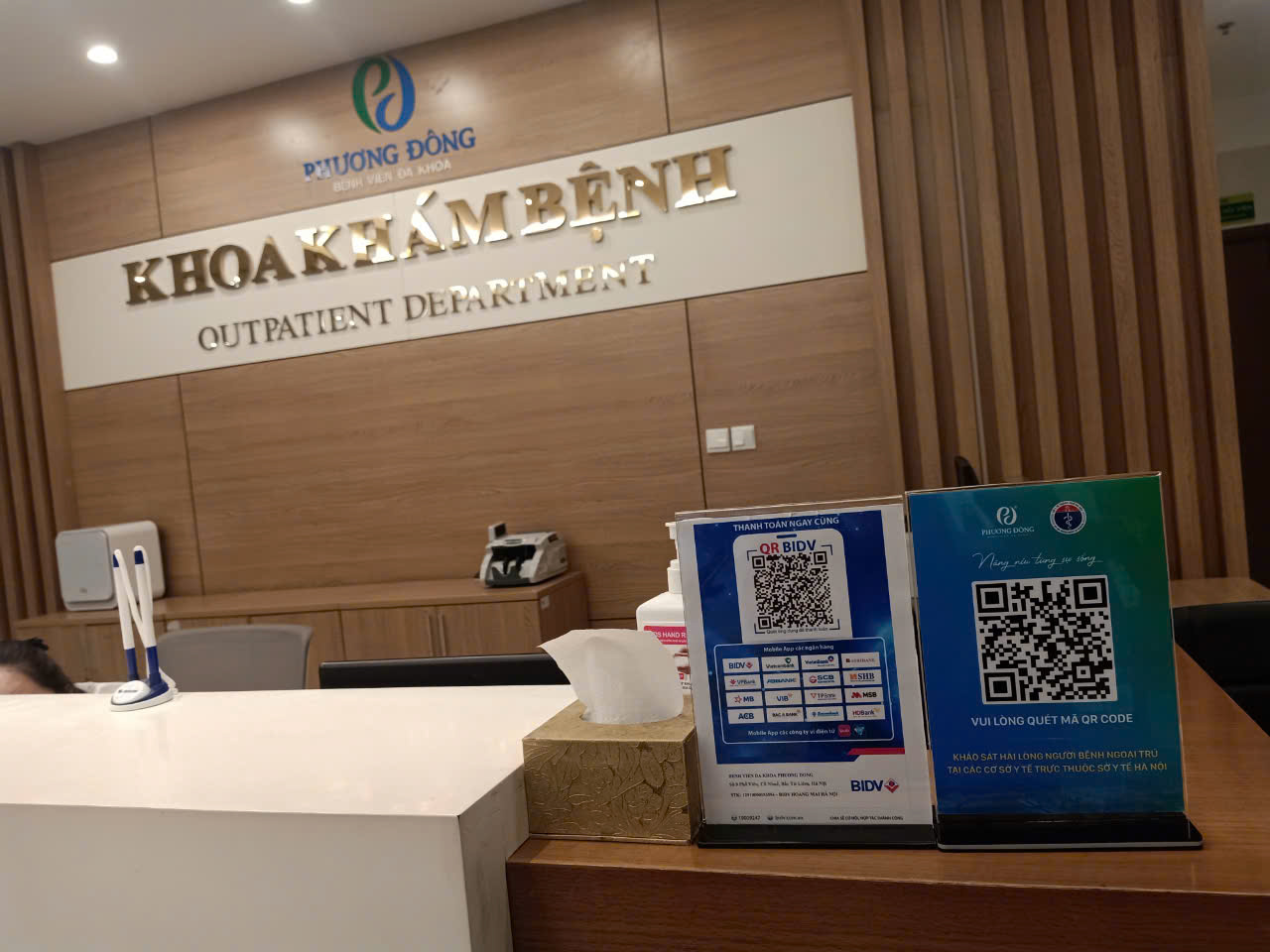 - Quét mã QR Code: Các mã QR được niêm yết công khai tại khu vực đón tiếp, khoa khám bệnh và các khoa nội trú.