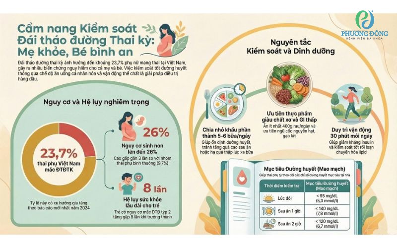 Đái tháo đường thai kỳ là một vấn đề quan trọng mà nhiều mẹ bầu quan tâm. Vậy khi bị mắc bệnh, mẹ nên bổ sung thực phẩm như thế nào để có một thai kỳ khỏe mạnh? Cùng Bệnh viện Đa khoa Phương Đông tìm hiểu chi tiết về dinh dưỡng đái tháo đường thai kỳ trong bài viết sau
