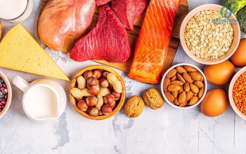 - Thực phẩm nguồn gốc động vật gồm: Thịt bò, thịt heo, thịt gà, cá hồi, cá thu, cá trích, trứng, sữa và các sản phẩm từ sữa,...