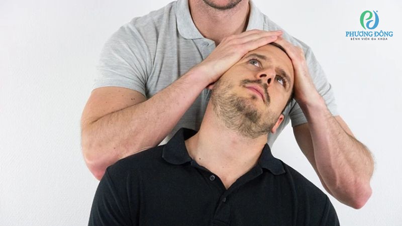 - Nghiệm pháp kéo giãn cổ: Người bệnh nằm ngửa, bác sĩ dùng tay giữa vùng chẩm và cằm rồi nhẹ nhàng kéo theo trục dọc. Cơn đau giảm, cơ thể nhẹ nhõm cho biết chèn ép dây thần kinh do thoát vị đĩa đệm.