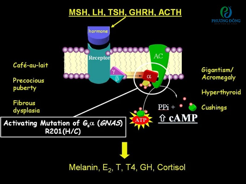 Khi gen GNAS bị đột biến, protein Gαs trở nên hoạt hóa liên tục, khiến tế bào sản xuất hormone quá mức và không còn chịu sự điều tiết bình thường của cơ thể. Tùy vào việc đột biến xảy ra ở mô nào (xương, da hay tuyến nội tiết), người bệnh sẽ xuất hiện các triệu chứng tương ứng ở cơ quan đó.