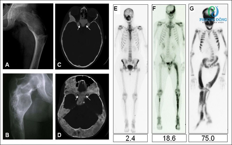 - Chẩn đoán hình ảnh: Bác sĩ có thể chỉ định chụp X-quang, CT scan hoặc MRI xương để đánh giá mức độ loạn sản xơ, xác định vị trí và phạm vi tổn thương xương. Những kỹ thuật này giúp theo dõi tiến triển bệnh và hỗ trợ xây dựng phác đồ điều trị phù hợp.