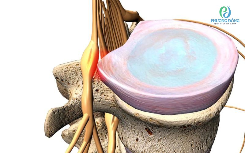 - Đĩa đệm bị rách hoặc phình ra có thể gây kích thích hoặc đè ép trực tiếp lên rễ thần kinh.