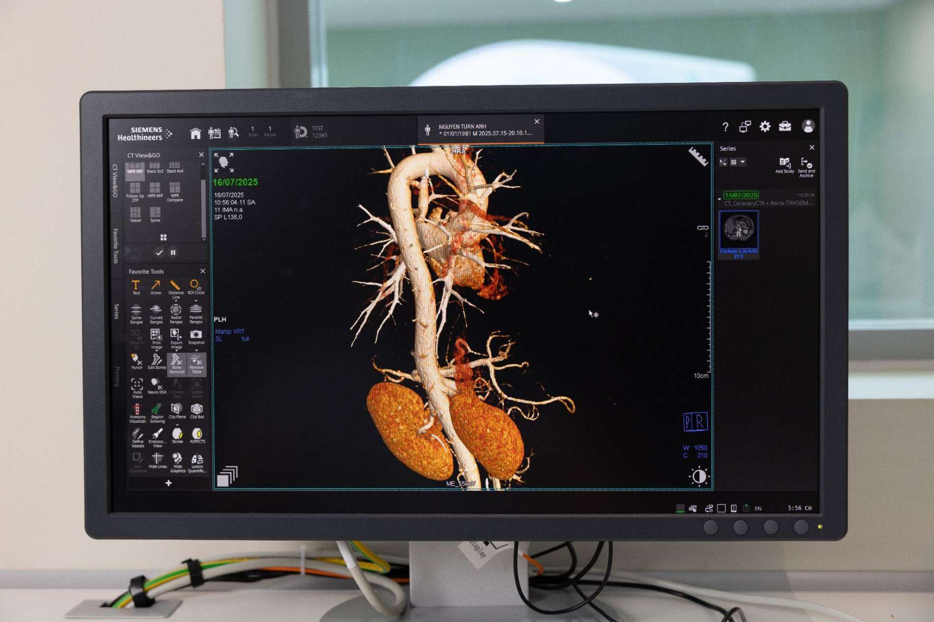 Ngoài ra, hệ thống cho phép tốc độ chụp nhanh, lát cắt siêu mỏng chỉ 0,2 mm, đồng thời giảm liều tia X và lượng thuốc cản quang, an toàn hơn. Đây là lợi thế lớn cho nhóm bệnh nhân cần chụp CT nhiều lần như trẻ em, người cao tuổi hay người mắc bệnh mạn tính.