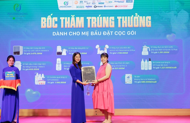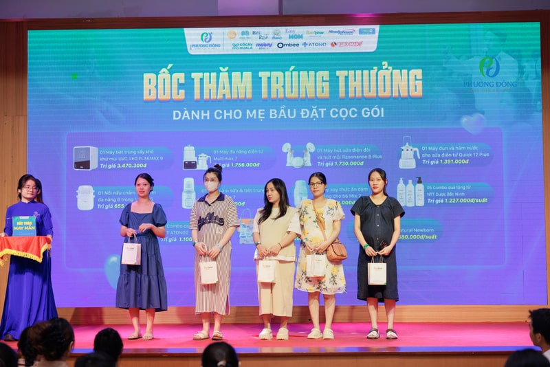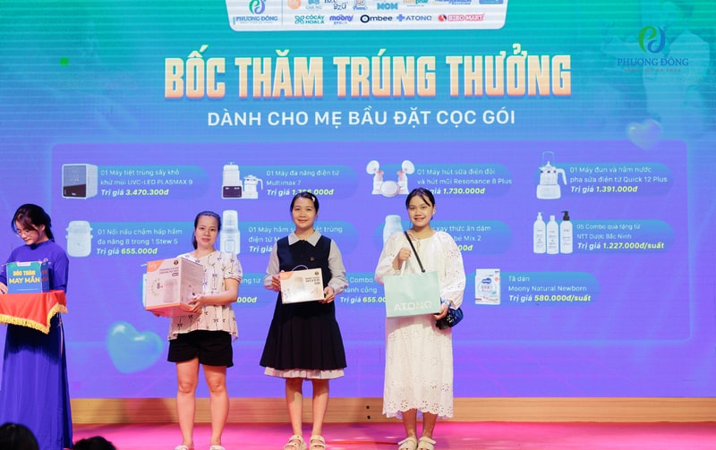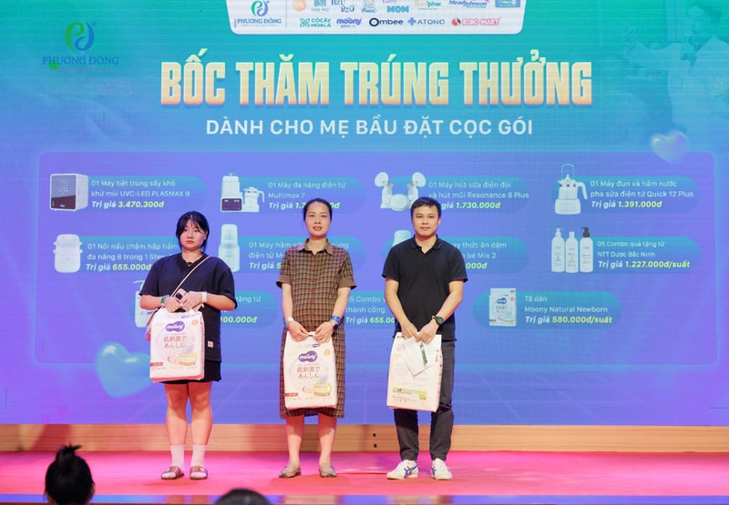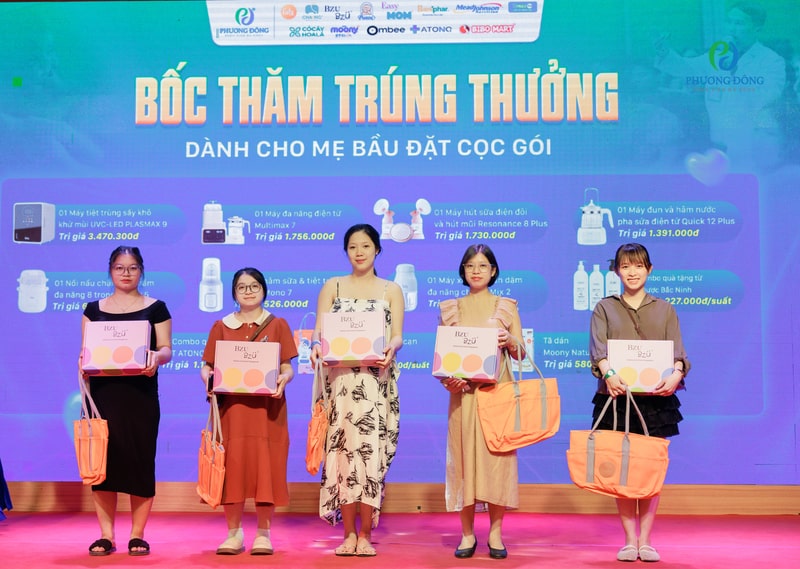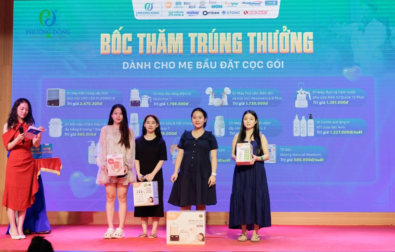 Nhân đây, xin chân thành cảm ơn các nhà tài trợ: Fatzbaby, CHAANG Baby, BZU BZU, Pureen, Easy Mom, Bibo Mart, Dimao Pro, Cỏ Cây Hoa Lá, Moony, Ombee, Atono 2, Mead Johnson, Dược Bắc Ninh đã đồng hành cùng Phương Đông, gửi tặng tới các mẹ bầu những sản phẩm chất lượng và thiết thực trong hội thảo thai sản “Xuất huyết thai kỳ”.