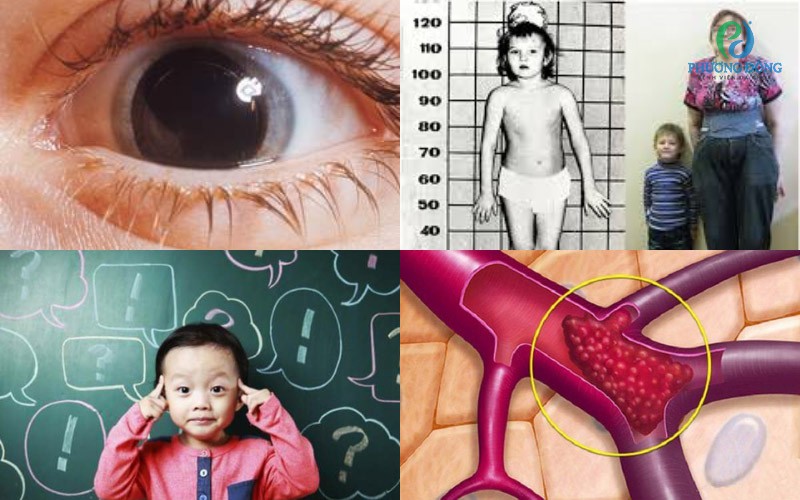 Mắt: Lệch thủy tinh thể (thường theo hướng xuống dưới và vào trong), kèm theo cận thị nặng tiến triển sớm, làm suy giảm thị lực nếu không được phát hiện và can thiệp kịp thời.