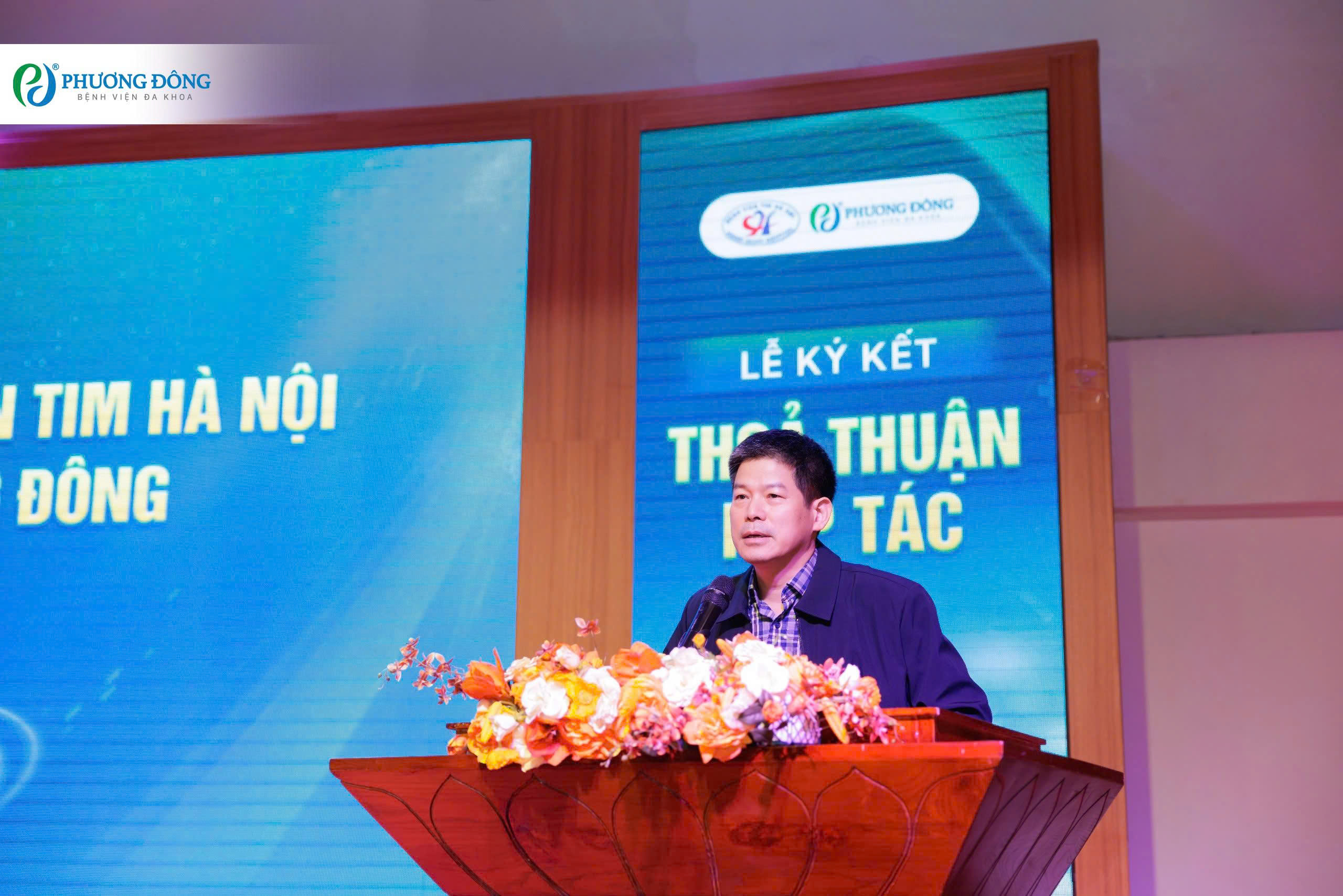 Phát biểu tại buổi lễ, PGS.TS.BS Nguyễn Trung Chính – Giám đốc Bệnh viện Đa khoa Phương Đông cho biết: “Khi kết hợp chuyên môn sâu của Bệnh viện Tim Hà Nội với hạ tầng công nghệ hiện đại của Phương Đông, người bệnh sẽ là người được hưởng lợi nhiều nhất, được chẩn đoán sớm hơn, điều trị chính xác hơn và chăm sóc trong môi trường nhân ái, an toàn”.