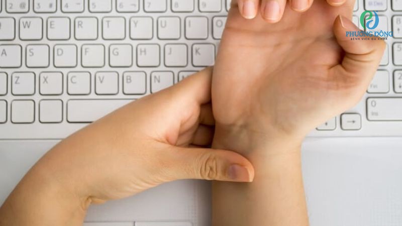 - Chỉ gây đau khi sử dụng khớp quá tay quá nhiều hoặc kèm theo viêm cấp tính màng hoạt dịch, chấn thương cổ tay hoặc nhiễm trùng.