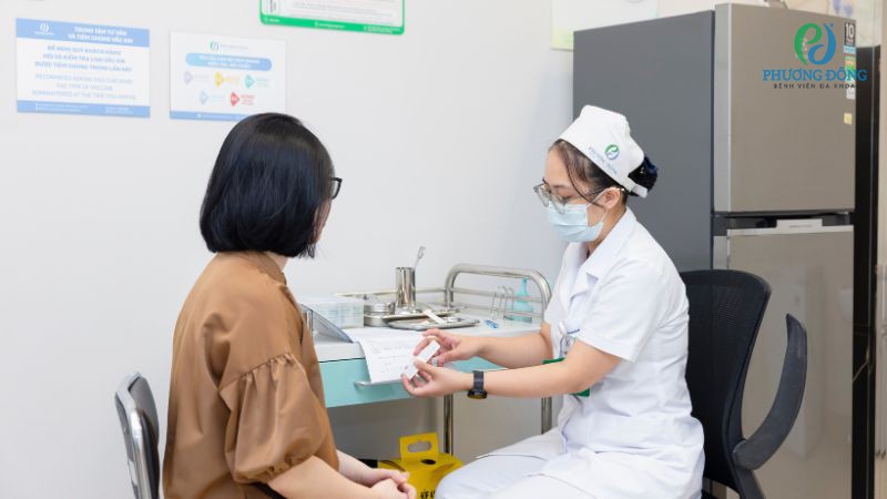 Mọi khách hàng khi đến Trung tâm Tiêm chủng - Bệnh viện Đa khoa Phương Đông đều bắt buộc kiểm tra sức khoẻ tổng quát. Trường hợp đang sốt, bị viêm đường hô hấp, dị ứng cấp tính, trong thời gian điều trị nhiễm trùng sẽ được hoãn lịch tiêm đến khi hồi phục hoàn toàn.