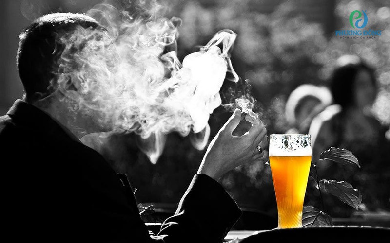 - Sử dụng chất kích thích: rượu, bia, thuốc lá: Rượu bia, thuốc lá và các chất kích thích là “kẻ thù” lớn nhất của gan. Khi hấp thu vào cơ thể, gan phải làm việc liên tục để chuyển hóa và đào thải cồn, nicotine cùng các độc chất. Nếu sử dụng thường xuyên, tế bào gan bị tổn thương, men gan tăng cao, gây ra tình trạng nóng gan, viêm gan, gan nhiễm mỡ hoặc xơ gan. Không chỉ vậy, rượu bia và thuốc lá còn làm tăng nguy cơ mắc ung thư gan – một trong những bệnh lý gan nguy hiểm nhất hiện nay.