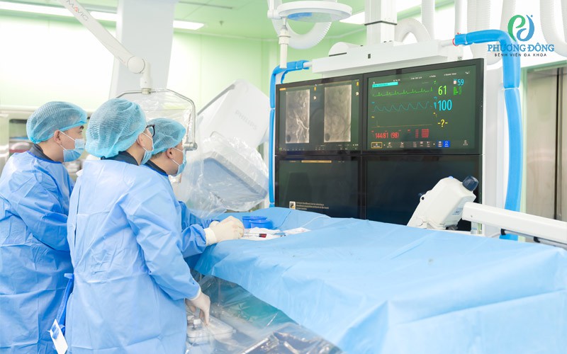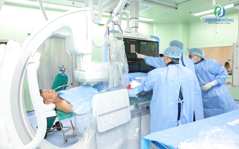 Các bác sĩ và kỹ thuật viên đang tiến hành phương pháp nút mạch tuyến tiền liệt cho bệnh nhân