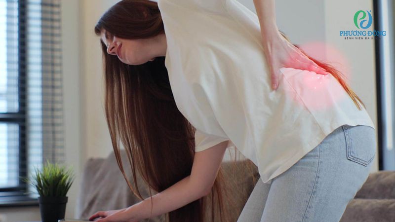 - Đau lưng dưới khi cúi hoặc nâng đồ vật nặng.