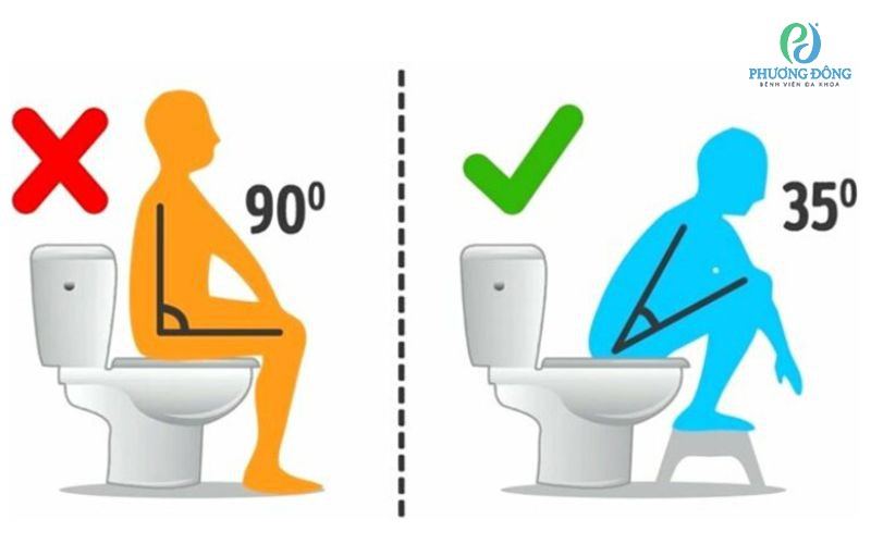 - Ngồi đúng tư thế khi đi đại tiện: Khi đi vệ sinh, ngồi hướng về phía trước và nâng hai chân lên, sử dụng cơ bụng để tạo áp lực đẩy phân ra ngoài.