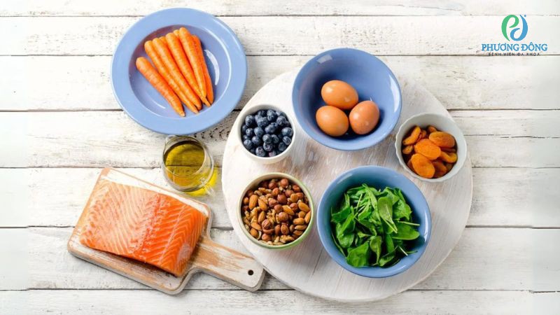 Chế độ dinh dưỡng cũng đóng vai trò quan trọng trong việc điều trị, khắc phục rối loạn điều tiết ở mắt. Bạn nên ưu tiên các thực phẩm dồi dào vitamin A, vitamin E, omega-3, kẽm, chất chống oxy hóa để tăng cường sức khỏe mắt.