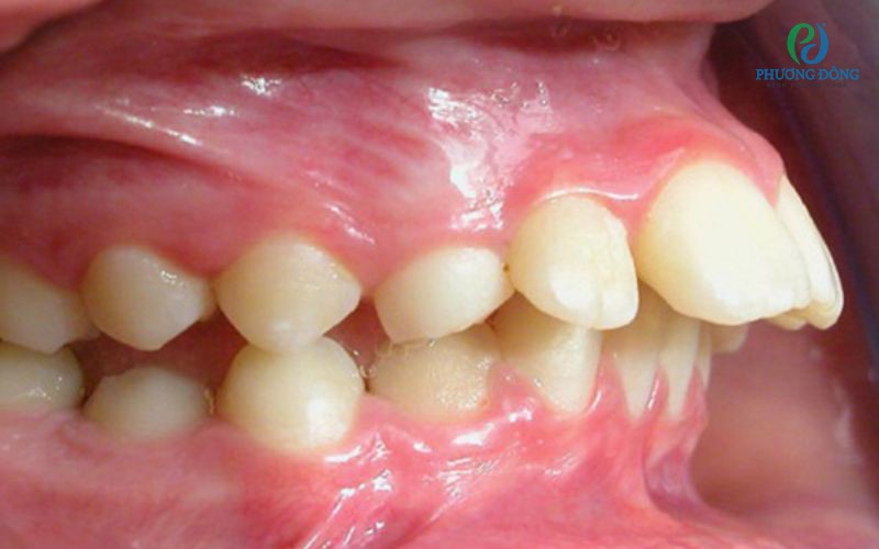 - Các răng hàm trên có dấu hiệu chìa ra ngoài quá mức, cảm giác môi dưới nằm dưới răng hàm trên.
