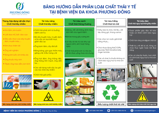 Ảnh 1: Bảng hướng dẫn phân loại chất thải y tế theo Thông tư 20/2021/TT-BYT ngày 26/11/2021 của Bộ Y tế tại Bệnh viện đa khoa Phương Đông
