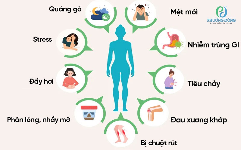 Do giảm hấp thu chất béo, cơ thể sẽ không nhận đủ các vitamin tan trong dầu (A, D, E, K) cùng nhiều khoáng chất quan trọng như canxi, magie, sắt và kẽm. Điều này gây ra hàng loạt vấn đề sức khỏe: