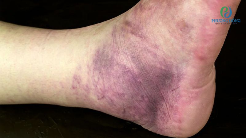 - Khu vực da quanh khớp cổ chân bị bầm tím, sưng phù.