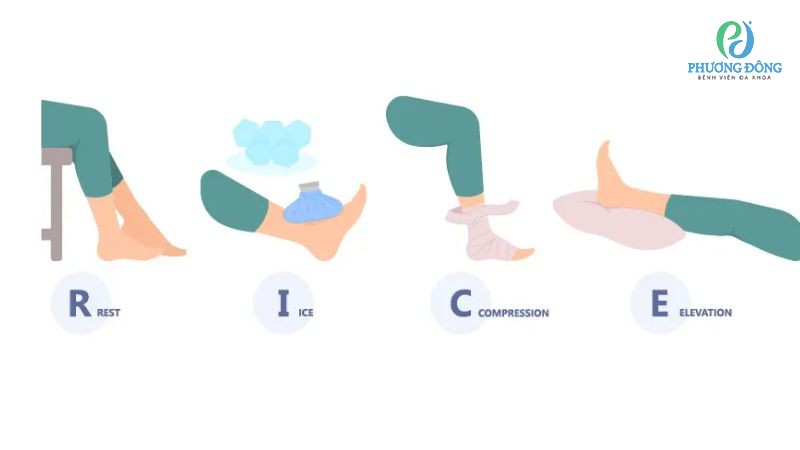 Sơ cứu trật khớp cổ chân cần tuân theo nguyên tắc RICE, đảm bảo vùng tổn thương được kiểm soát hiệu quả. Cụ thể: