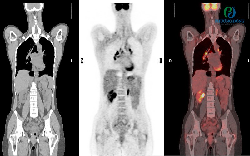 - Hình bên phải là ảnh kết hợp giữa ảnh PET và CT.