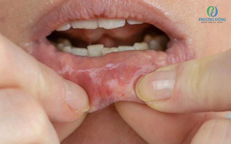 Những triệu chứng thường gặp phải khi mắc viêm khoang miệng bao gồm:
