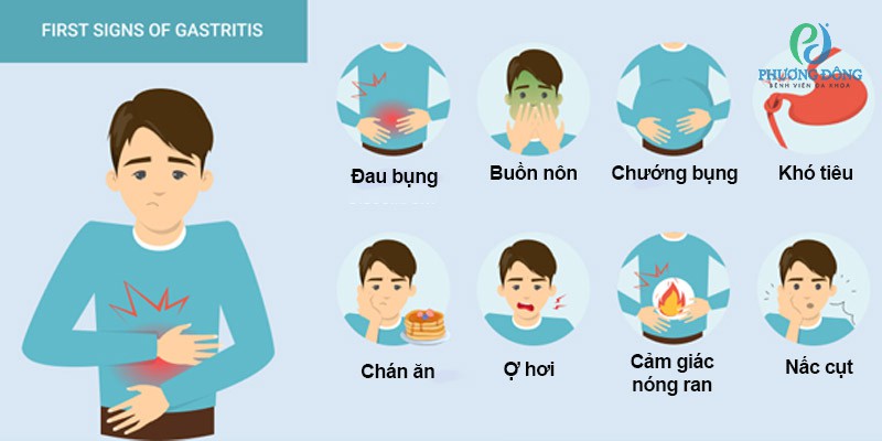 Bệnh nhân thường gặp các triệu chứng như đau bụng, khó tiêu, buồn nôn và cảm giác no sớm