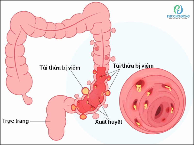 - Rò tiêu hoá: Viêm túi thừa kéo dài có thể làm hình thành các đường thông bất thường giữa ruột và các cơ quan lân cận như bàng quang, âm đạo, hoặc thành bụng, gây khó khăn lớn trong điều trị.
