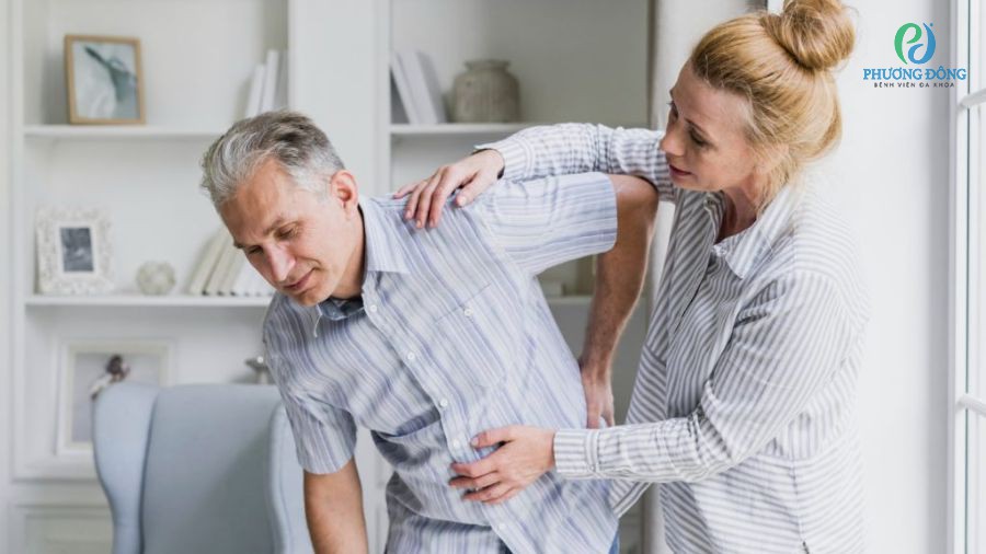 - Vôi hóa ở cột sống thắt lưng: Lưng rơi vào tình trạng đau nhức, tê lan xuống chân, chuột rút, giãn tĩnh mạch chi dưới, rối loạn tiểu tiện hoặc chức năng sinh dục.